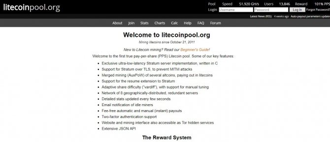 Litecoinpool – еще один знаменитый пул для добычи Litecoin, заслуживающий внимания. Он относится к старейшим проектам, ведь датой его открытия является 2011 год – практически сразу после выпуска первых Litecoin. Ресурс надежен и предоставляет пользователям обширный функционал.