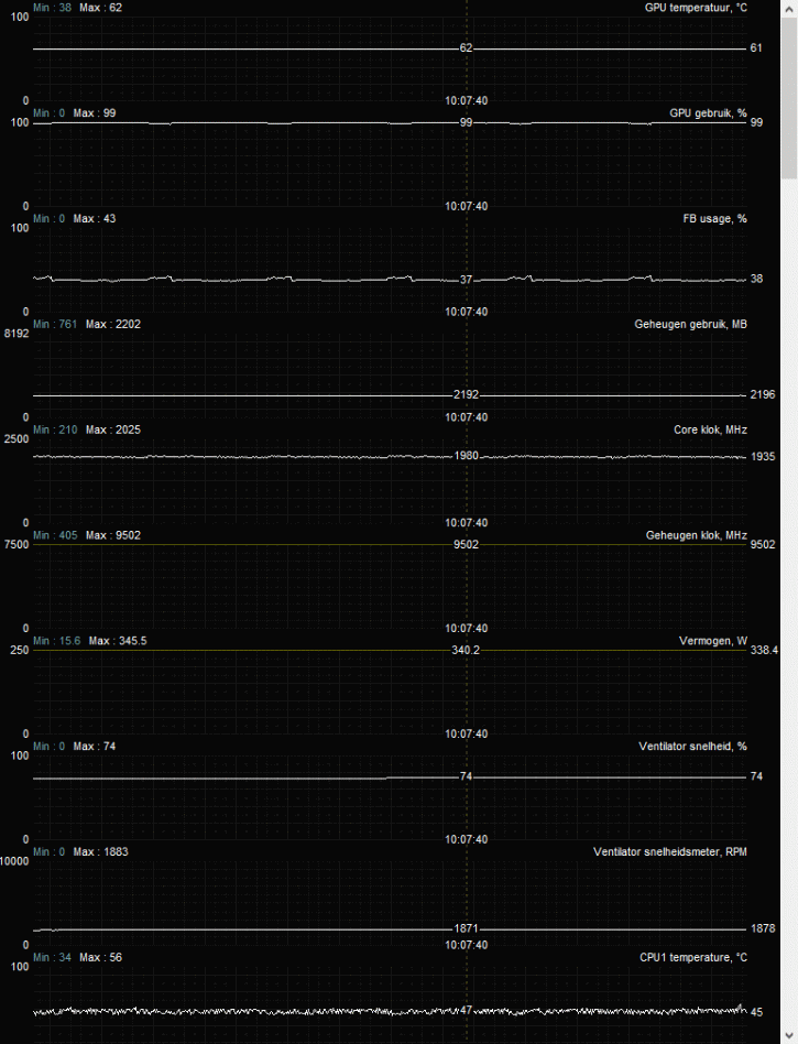Температура GPU не превышает 60 градусов – это отличный показатель для карты с таким потреблением.
