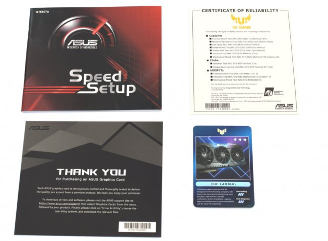 В целом это стандартная комплектация для Asus. Однако для такой большой карты хотелось бы видеть дополнительный кронштейн (который идет у многих других вендоров).