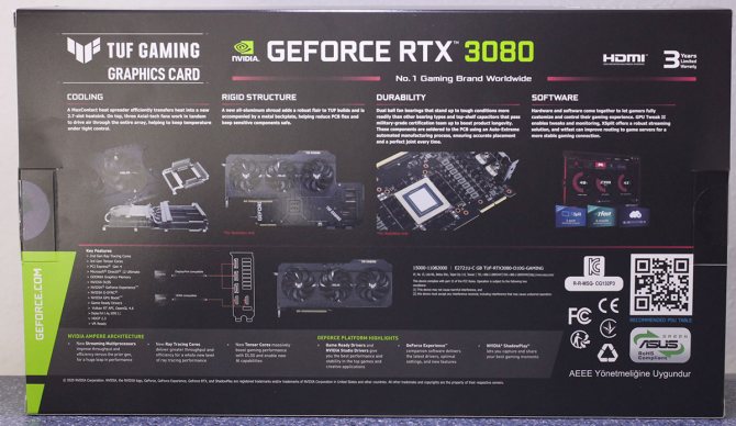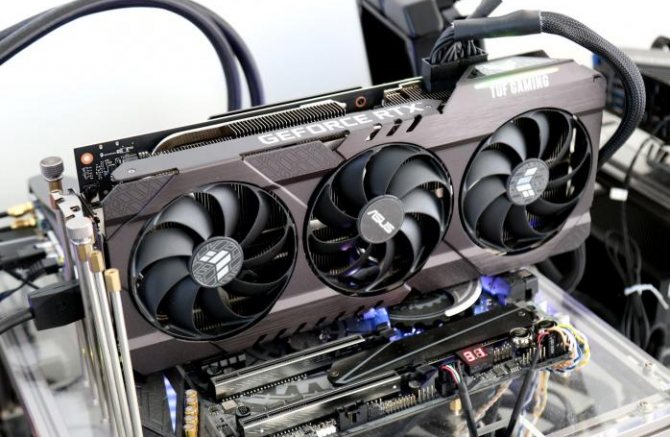 Как и все протестированные нами карты, RTX 3080 TUF Gaming – это также большая карта. Ее размеры составляют 299,9 x 126,9 x 51,7 мм.