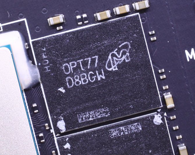 Видеокарта оснащена 10 гигабайтами GDDR6X. Поставляется от компании Micron. Маркировка памяти — D8BGW.