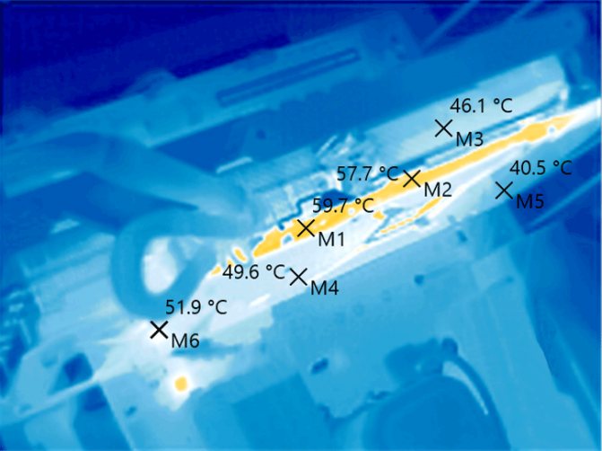 Установив тепловую камеру сверху, мы получаем следующие показатели:
