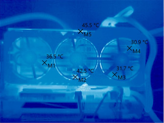 Все тепловые снимки сделаны под максимальной нагрузкой для общего представления и понимания системы охлаждения с небольшим разгоном по ядру и памяти.
