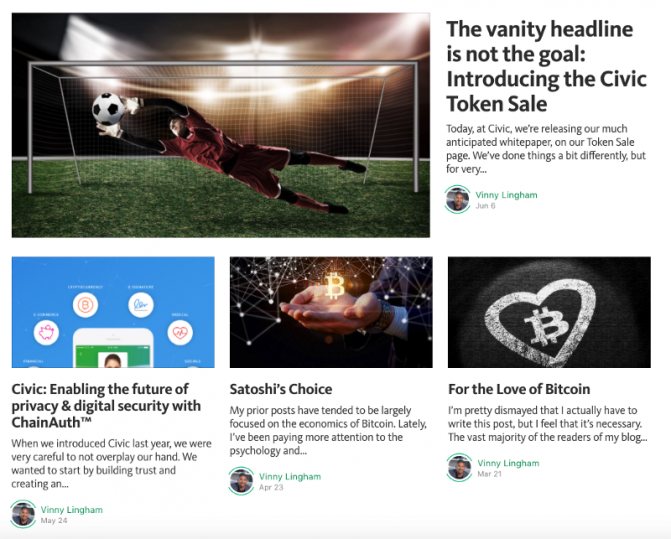 Разработчики Publish0x не первопроходцы, первая и самая крупная платформа для публикаций и чтения контента — это Steemit, она же позиционируется как самая крупная социальная сеть на блокчейне или блокчейн-блог. У сайта есть свои цифровые монеты: STEEM, Steem Power и Steem backed dollars. Токены STEEM ($0,148) и SBD ($1) можно обменять на Bitcoin и Ethereum на биржах Bittrex, Poloniex и OpenLedger. Монеты Steem Power нельзя вывести в фиат, это, скорее, аналог акций, обладатели которых могут рассчитывать на доход. Авторы статей получают вознаграждение сразу в трех токенах в соотношении 50% Steem Power, 25% STEEM и 25% SDB. Сумма зависит от количества просмотров, лайков и комментариев.