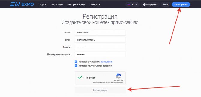 Зарегистрироваться на обменнике