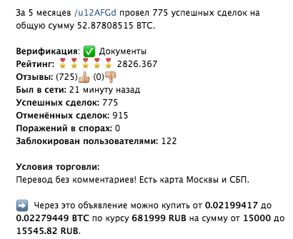 Важно. На рынке работает огромное количество мошенников под видом частных продавцов криптовалют. Они под любым предлогом выманивают предоплату, а иногда и данные карточки. Фактически мошенники просто воруют деньги доверчивого человека. Никаких биткоинов он в итоге не получает. Сделки по купле-продаже криптовалют проводить можно только с людьми, к которым есть действительно доверие (например, близкими знакомыми).