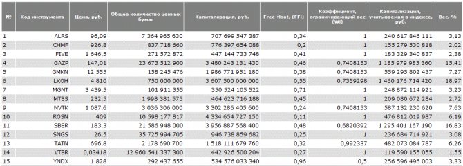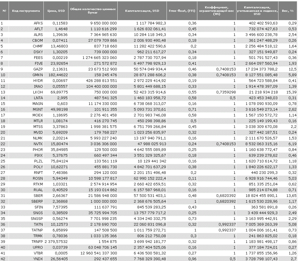 В итоге, суммируя все эти показатели и строится база расчета для индекса и компаний входящих в него с определенной долей веса.