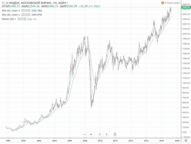 Биржевой индекс отражает положение на фондовом рынке страны. Само его значение не несет никакой информации. Главная его цель — показывать динамику. Изменение его стоимости с течением времени.