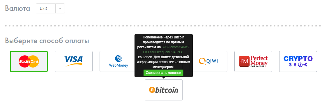 Пополнить счет и вывести заработанные средства можно с помощью банковских карт, перевода, электронных денег, биткоинов.