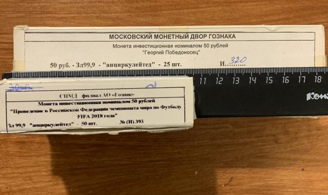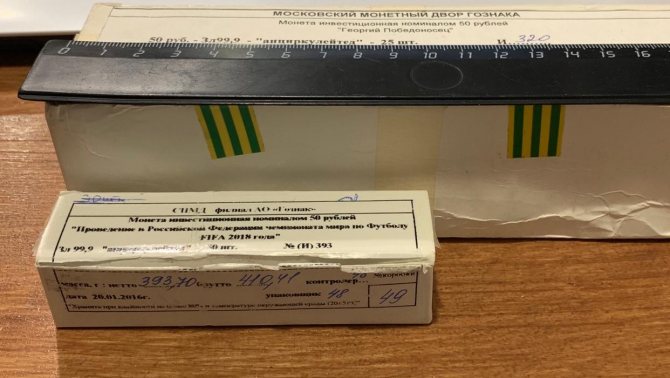 Масса драгметалла чеканится непосредственно на изделии. Информацию о тираже можно найти на сайте Центробанка, в разделе «база данных по справочным и инвестиционным мотетам».